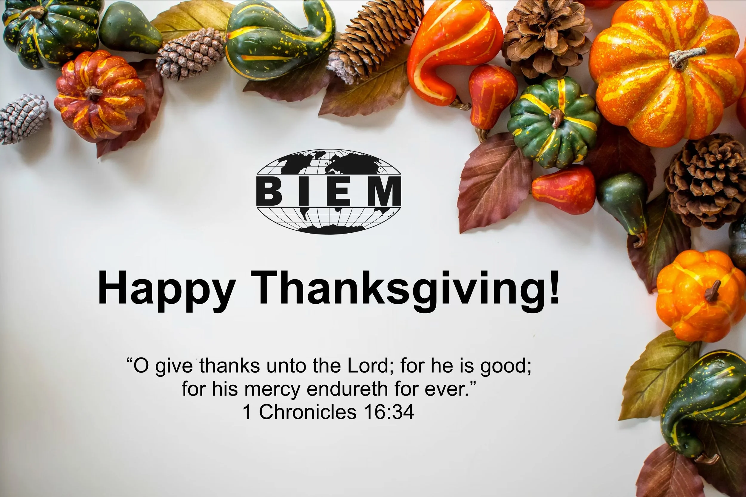 Because the Thanksgiving week is already a busy week for so many, and since BIEM will be closed for November 27-28, in lieu of posting our usual War Relief Updates, please accept our sincere wishes for a blessed time of giving thanks to our wonderful Lord.